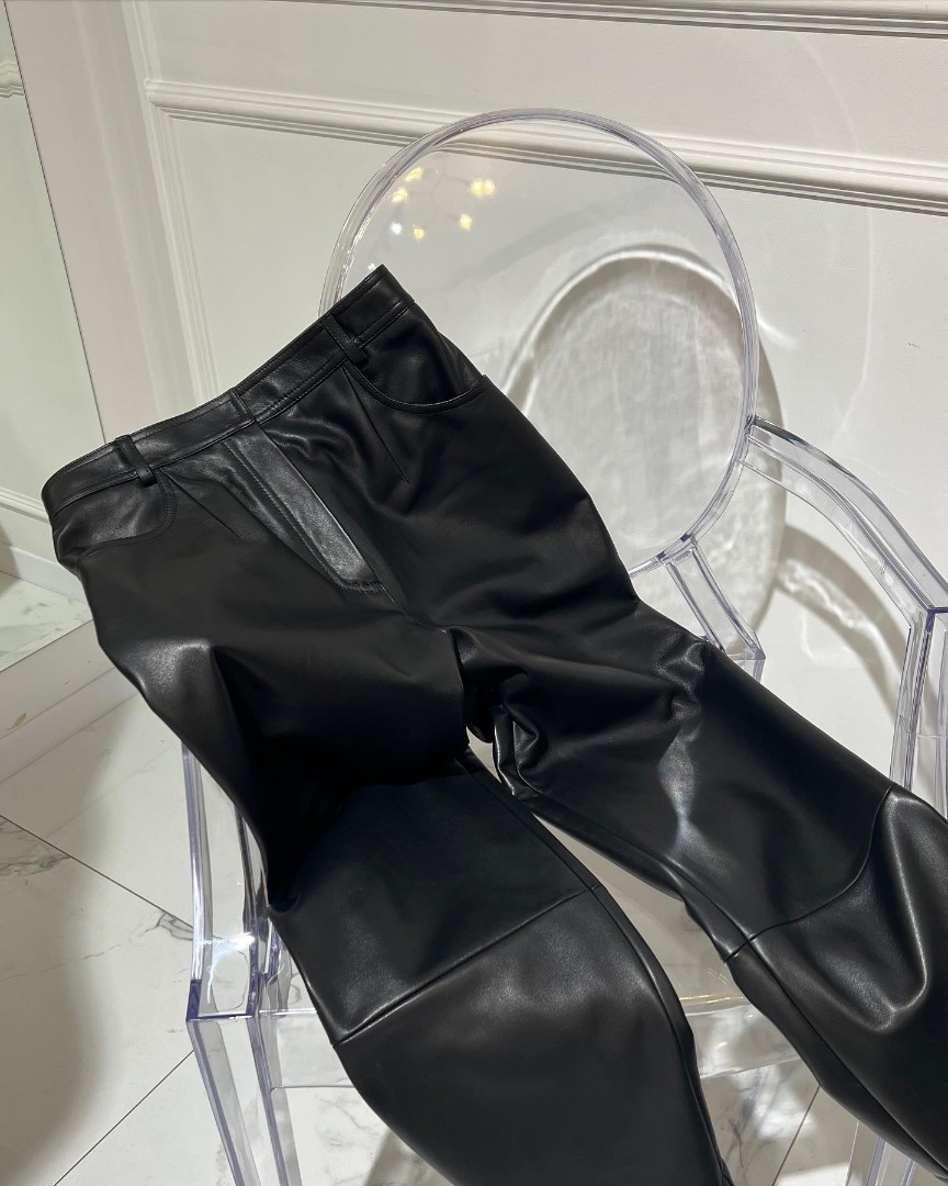 Модели мужских и женских кожаных брюк достаточно разнообразны. Это и прямые классические, и свободные в стиле кэжуал, прочные байкерские, узкие скинни, широкие клеши от колена или бедра. Дополнить модели можно вставками другого цвета, из текстурированной кожи или замши. В качестве декора используем металлическую фурнитуру, которая лучше всего сочетается с таким материалом — фактурные пуговицы, кнопки, замки-молнии с крупными зубцами, люверсы. В текстильный декор входит услуга персонализации — вышивка, аппликации, декоративные строчки.